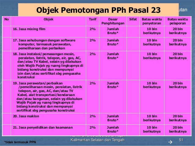 Pemotongan Dan Pembayaran Pajak Pph23 Pasal 23 Untuk Jasa